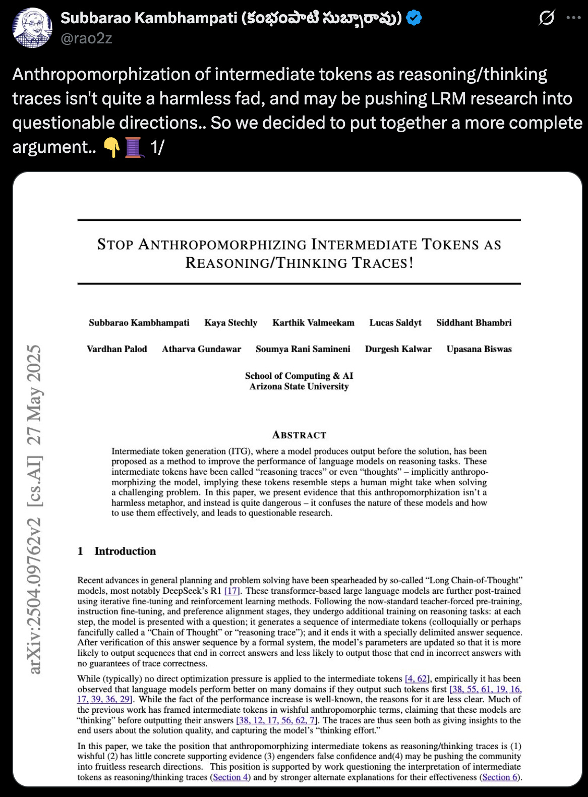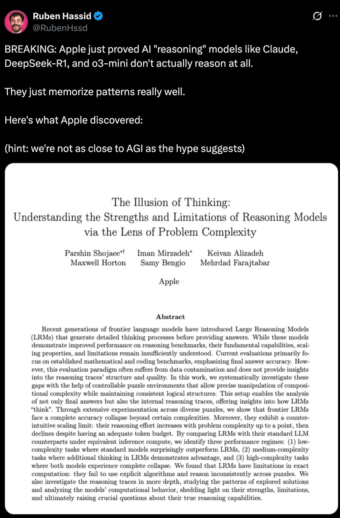 The broader expert community wasn't shocked by Apple's findings either. Renowned researcher Professor Rao highlighted on Twitter that these