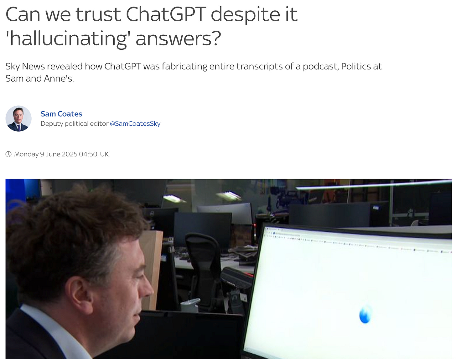 This exact phenomenon is highlighted in a recent Sky News segment, illustrating the surprising and plausible errors these models produce without validation mechanisms.